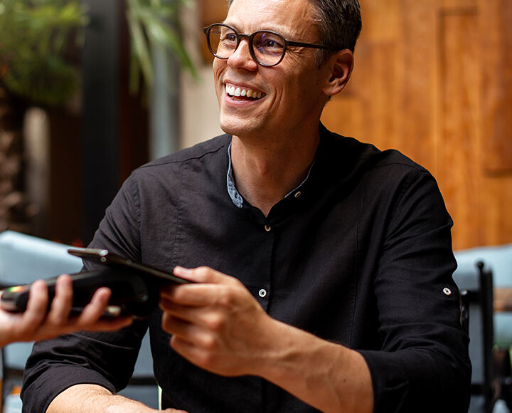 Les clients équipés d'une Apple tree Watch appuient deux fois sur le bouton latéral et placent leur écran près du TPE sans contact. L'Apple Watch émettra une légère vibration et un bip pour confirmer que leurs informations de paiement ont bien été prises en compte.